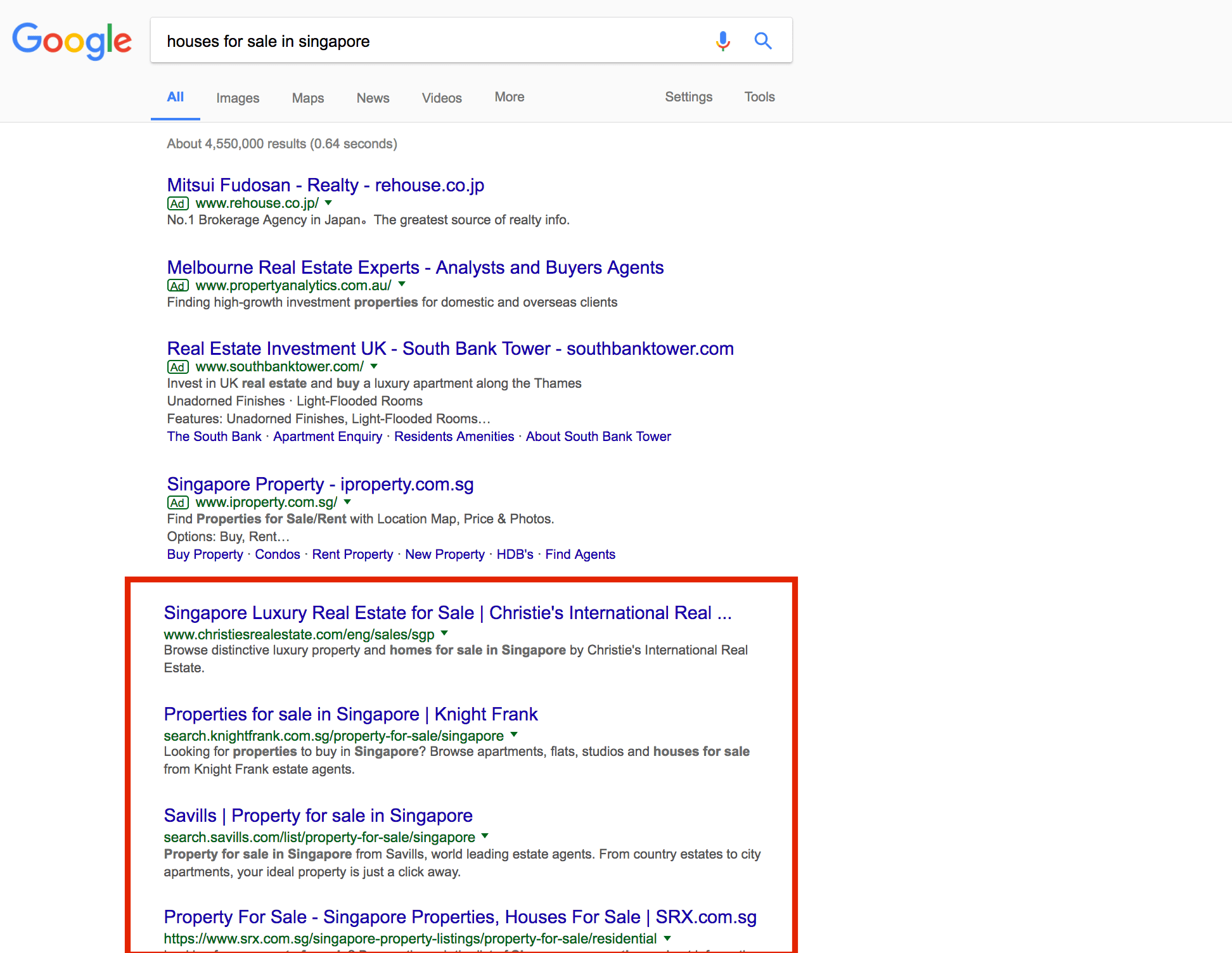 You cannot pay Google to make your website rank higher for organic listings, and there are only 10 organic listings per page. So its important that your website is fully SEO optimised, so you have a better chance of ranking for searches from people looking for property or real estate information in Malaysia.